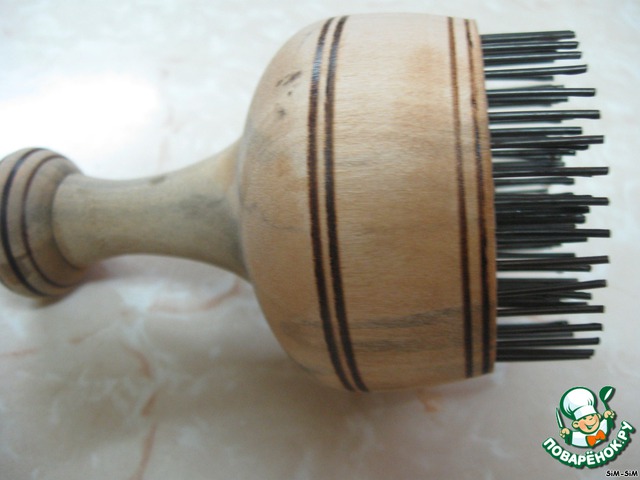 Для наглядности показываю этот инструмент. Он нужен для того, чтобы лепешки не вздувались и не деформировались, а серединка имела красивый узор..