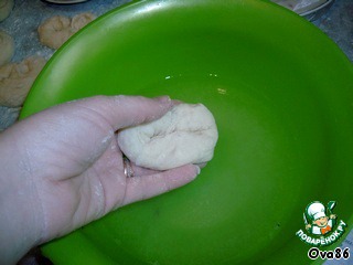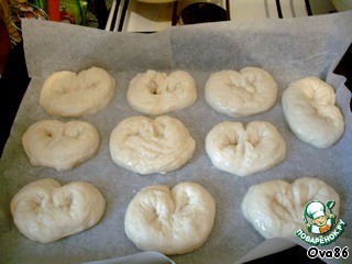 Погрузить крендели по одному в воду с содой на несколько секунд, достать...