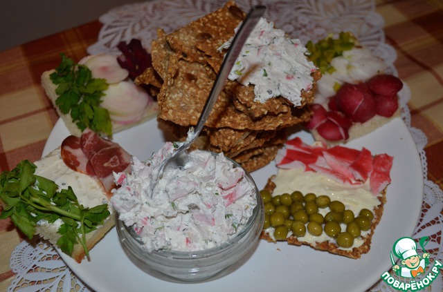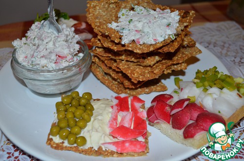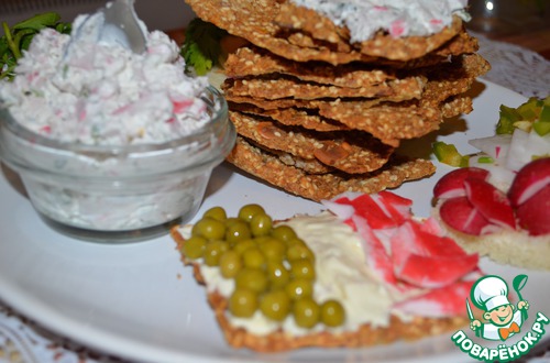 Эти маленькие хлебцы могут быть и перекусом, и вполне полноценной заменой настоящему хлебу. С творожной пастой эти кусочки очень вкусны и могут стать настоящим ужином, который не вредит фигуре.