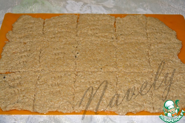 Аккуратно надрезаем на желаемый размер хлебцев, слегка накалываем вилкой. Выпекаем при 200 градусах минут 10-15, зависит от толщины хлебцев.