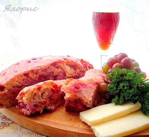 Подаем наш свекольный хлеб горячим с хорошим красным вином, сыром и виноградом.