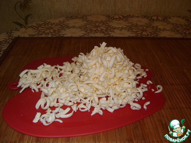 Перед тем как готовить, необходимо масло и сыр положить на некоторое время в морозилку. Достаём масло и натираем его на крупной тёрке.