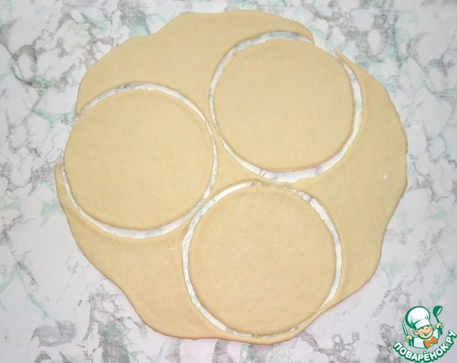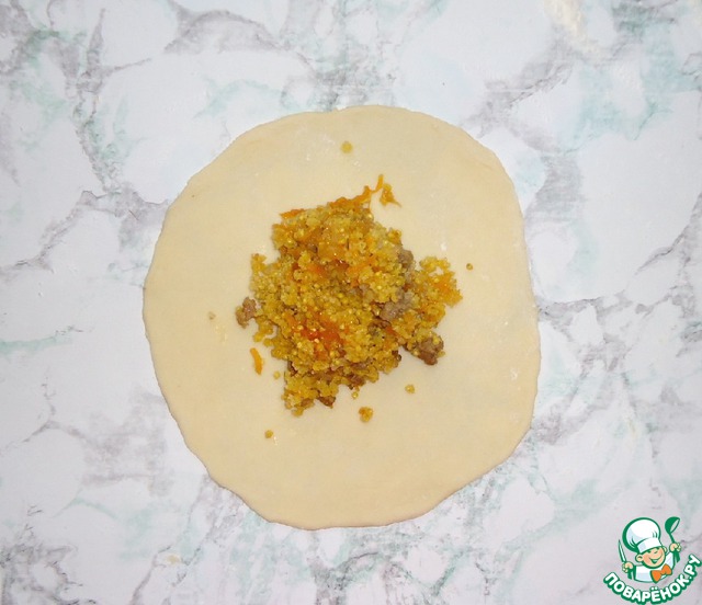 На круг из теста выложить готовую начинку.