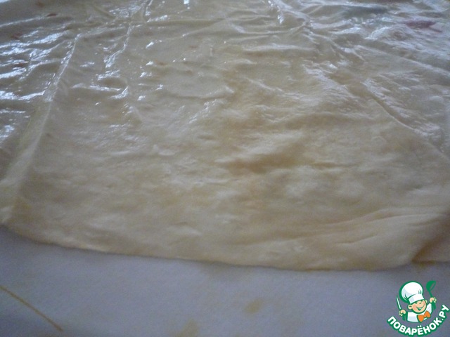Тесто юфка режим пополам, смазываем каждую половину маслом с водой.