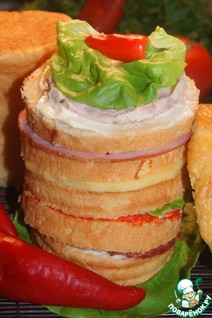 | Ну, конечно же, не настоящая, а в виде слоеных тостов, а вы что подумали?! Мне очень нравится этот вид сборки и подачи тостов, удобно и на столе, и на природе. В качестве прослойки-наполнителя можно использовать сыр, ветчину, салями, нарезку собственного приготовления, любую рыбу или морепродукты, в общем, все, что вы любите и предпочитаете. То же самое касается соуса - красный или белый, острый или сладкий - огромный полет для фантазии, а главное - это очень компактно, вкусно и аппетитно смотрится! |