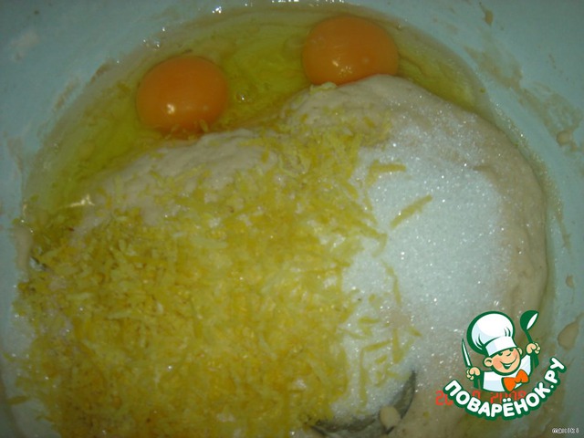 Затем ввести яйца, добавить оставшуюся муку, соль, 50 г сахара и цедру лимона. Замесить тесто и дать ему немного постоять.