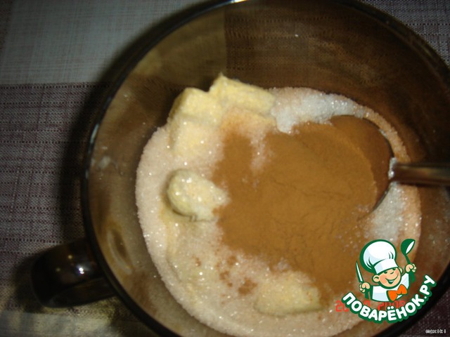 Тем временем мягкое сливочное масло растереть с оставшимся сахаром (я с какого-то перепугу бухнула туда и корицы *JOKINGLY* , забыв, что тесто у меня будет с явно выраженным лимонным ароматом).