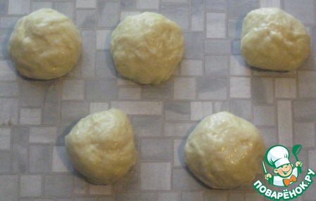 Замесить сдобное дрожжевое тесто в соответствии с Вашим любимым рецептом. Я готовлю его опарным способом, в 2 этапа. Сначала готовим опару: в слегка взбитые яйца добавляем теплое молоко, сахар, дрожжи и немного муки, ставим в теплое место на 15-20 мин.