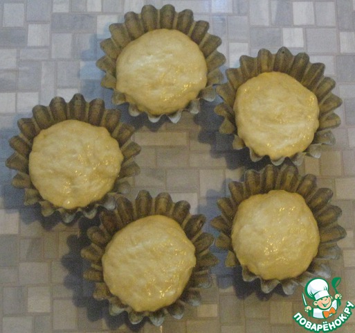 Тесто разделить на небольшие порции. Формы для выпечки кексов смазать растительным маслом.