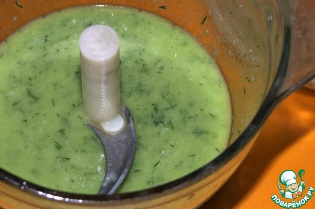 В блендер положить укроп (только зелень, твердые веточки не надо) и чеснок, насыпать соль, сахар и разрыхлитель, добавить воду и растительное масло.