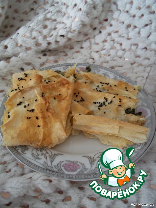 Вот такой красавец бёрек у нас получился. Режем порционно и подаем с турецким чаем!