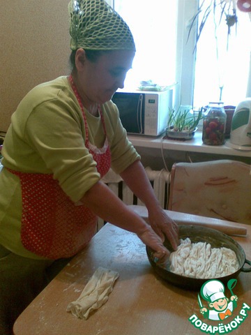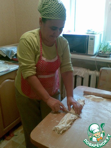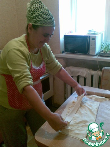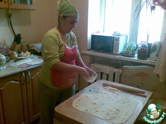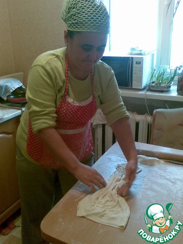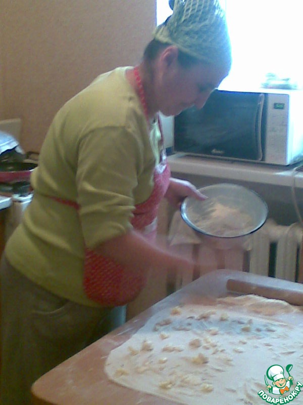 Pаскатать тесто.