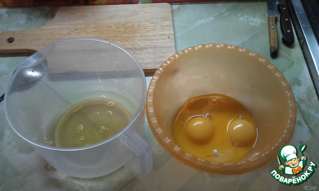 Отделить желтки от белков.
