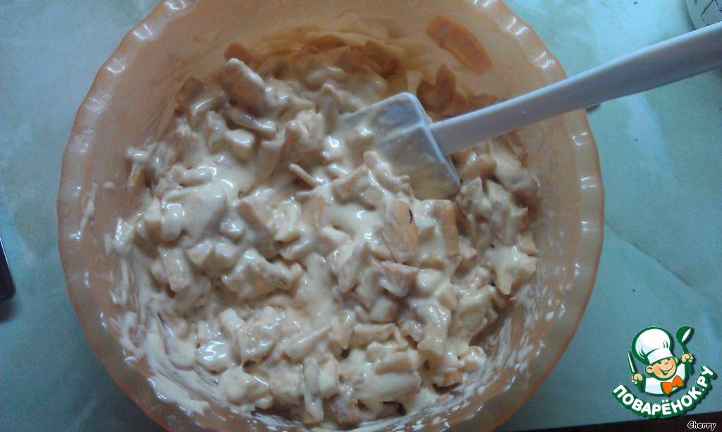 Смешать яблоки с желтковым кремом.