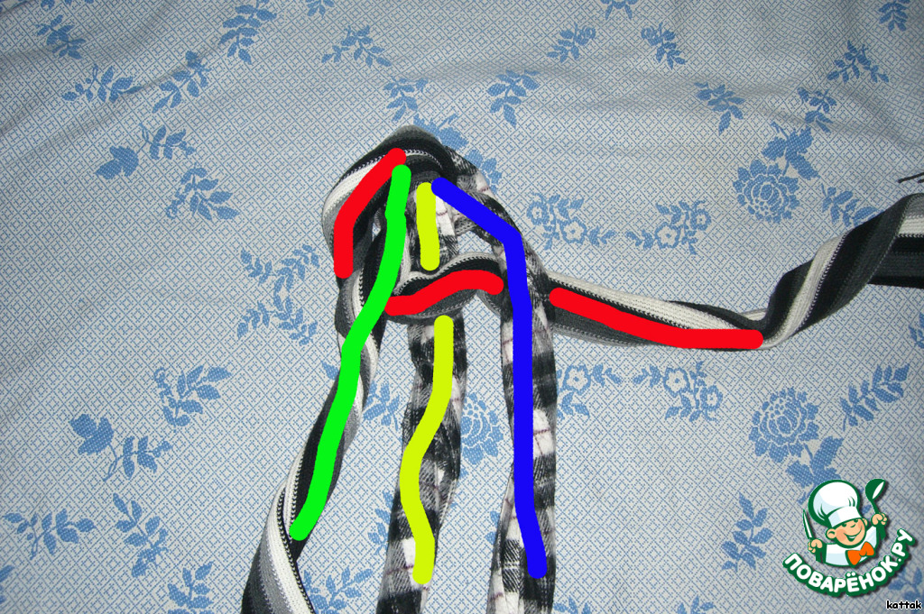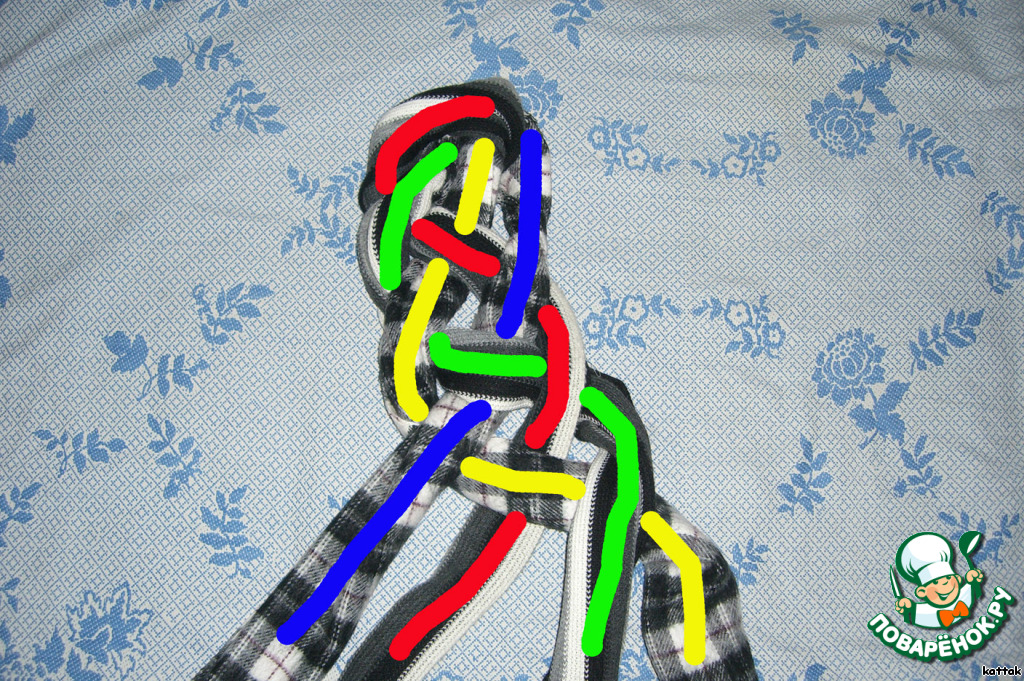 | Как плести косичку из 4 частей: инструкция по просьбе трудящихся :) Сделана за 5 минут из подсобного материала (шарфики и фотошоп ; ) |
