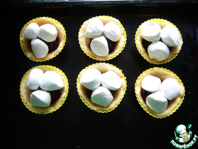 | Быстрые в приготовлении корзиночки-пирожные из песочно-дрожжевого теста, не требующего приготовления опары и длительной расстойки. В качестве наполнителя вишня, шоколад и маршмеллоу |