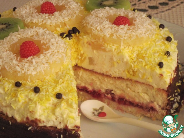 Ананасовый торт c лимоном и малиновым джемом" С праздником 8 марта!"