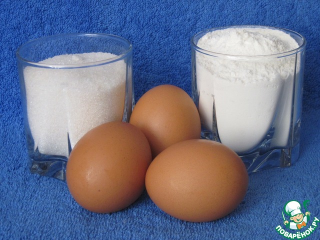 В это время приготовить продукты для бисквита :муку, сахар, яйца.