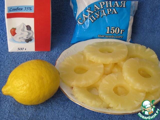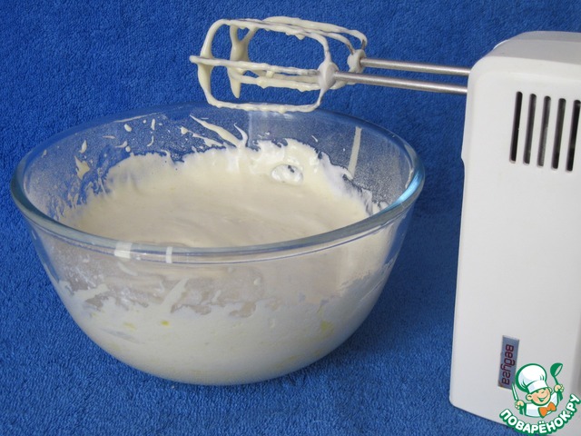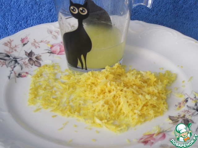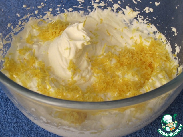 Приготовим крем. Взбить сливки с сахарной пудрой, добавим цедру лимона и лимонный сок, перемешаем.