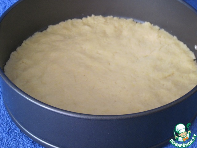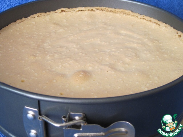 В это время испечем песочный корж при температуре 190 градусов в течении 15 минут.