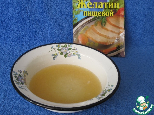 Зальем желатин небольшим количеством воды и отставим на 40 минут для набухания.