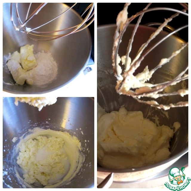 Для приготовления крема сливочное масло хорошего качества комнатной температуры взбить пару минут с сахарной пудрой, влить сливки той же температуры, что и масло. Взбивать около 10 минут. В начале взбивания масло будет отделяться от сливок, но потом получится однородный пышный крем! С добавлением сливок он не будет сильно масляным, будет нежнее. Полученный крем НЕ охлаждать, а использовать сразу (масло отслоится при повторном вымешивании!).