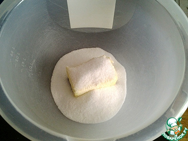 Масло комнатной температуры (я утром достаю его из морозилки, а вечером делаю тесто ) смешать с солью и сахаром. Особой гомогенности добиваться не имеет смысла, т. к. после добавления алкоголя масса станет крупинчатой.