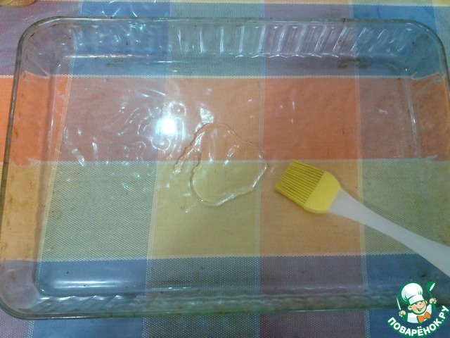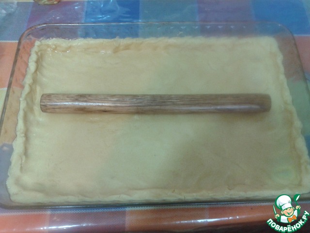 Пролежав в морозилке, тесто стало очень тугим. Разравниваем его по форме руками и скалкой, придавая ему не большие бортики.