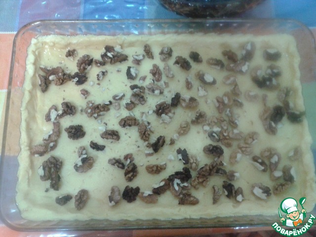 Орехи не нужно специально перемалывать или ломать. Укладываем по всей поверхности теста.