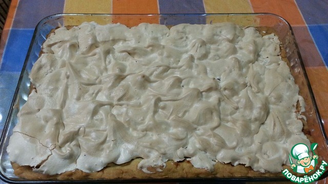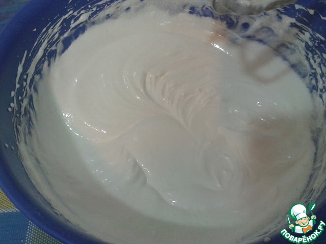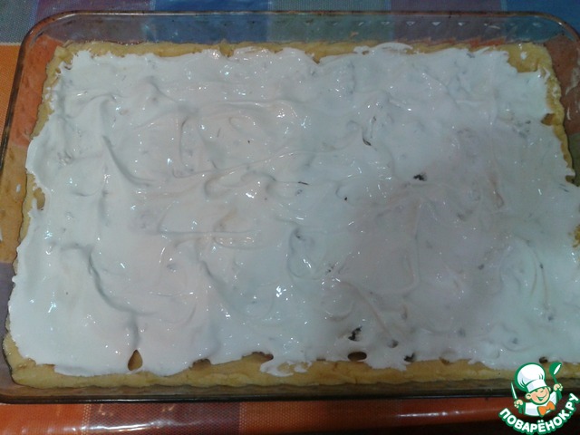 Замазываем белковой массой наш пирог. Ложкой я придаю форму волн.
