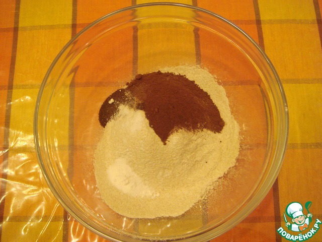 Смешать цельнозерновую муку с содой, молотыми корицей и гвоздикой. Если кто не любит эти пряности, можно заменить их столовой ложкой какао и щепоткой ванилина.