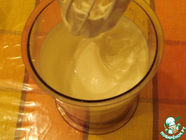 Отдельно взбить белки с коричневым сахаром. Сахара можно взять и поменьше, это на ваш вкус.