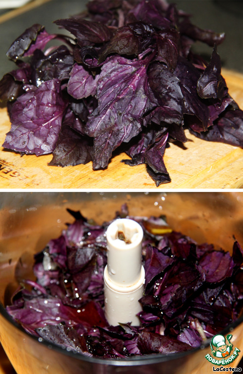 Свежий базилик нарезать, положить в блендер и измельчить.