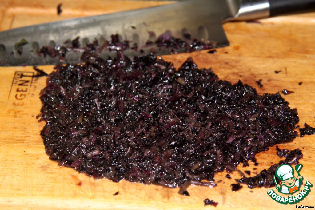 Достать базилик из блендера и порубить ножом, чтобы была однородная масса.