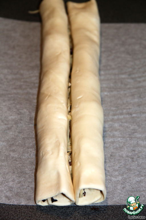 Тесто скручивать с 2-х сторон навстречу друг другу.