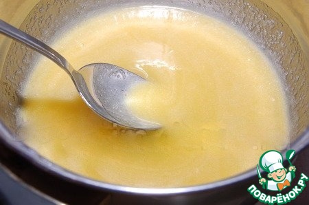 Нагревать мед с сахаром и маслом на маленьком огне, периодически помешивая, пока масса не станет однородной.