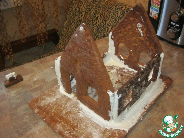 | Накануне своего ДР супруг огорчился что мы не попали на выставку пряничных фигур... вот я и рискнула приготовить ему пряничный домик. Рецепт простой-у меня приятельница по нему печёт малышам пряники и он проверен. С удовольствием представляю вам своё творение (конечно одной делать неудобно-склеивать тяжело) Буду рада, если вам понравится! |