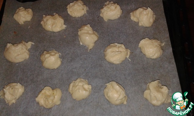 Чайной ложкой выкладывать тесто на противень, застеленный пергаментом