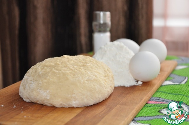 Замесить крутое тесто из яиц, соли и муки. Перед этим от одного желтка немного отделить.