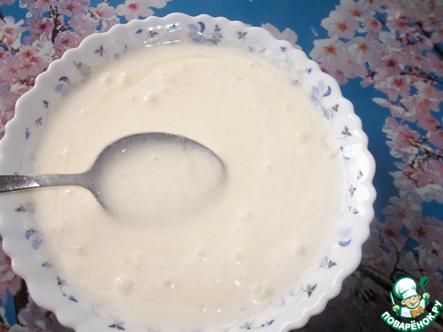 Хорошо перемешиваем. У меня покупная сметана, да ещё и 15%, поэтому взбивать нет смысла. Если свойская сметана, то можно взбить с сахаром.