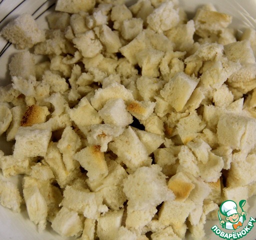 Хлеб режем на мелкие куски. На нужно 4 стакана.