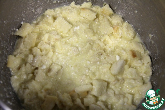 Добавляем хлеб к приготовленной массе и хорошо перемешиваем.