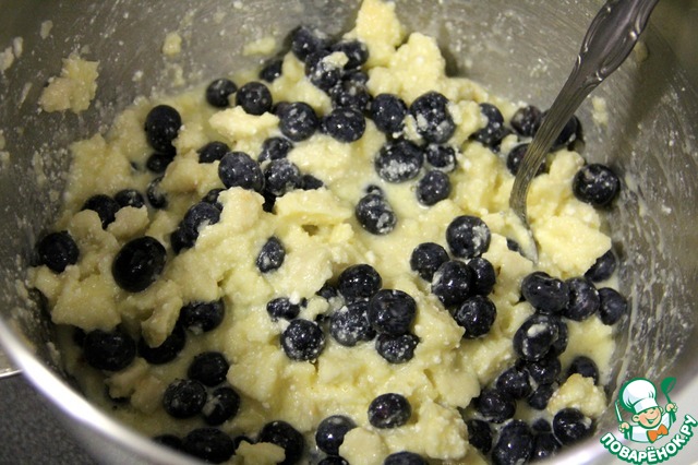 Так же добавляем ягоды и аккуратно мешаем.