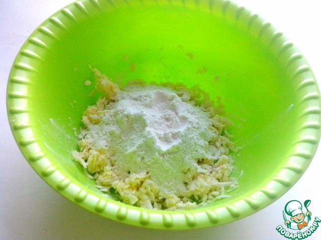 К маслу и сыру добавить постепенно муку (может уйти меньшее количество муки). Растереть муку со смесью из сыра и сливочного масла.