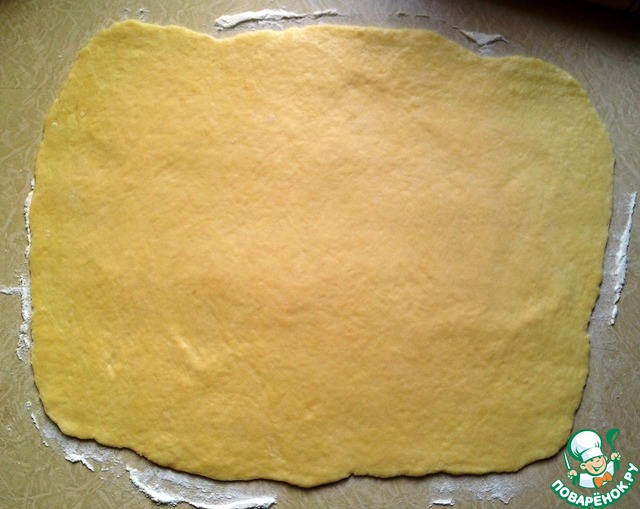 Раскатайте тесто в пласт толщиной 5 мм.