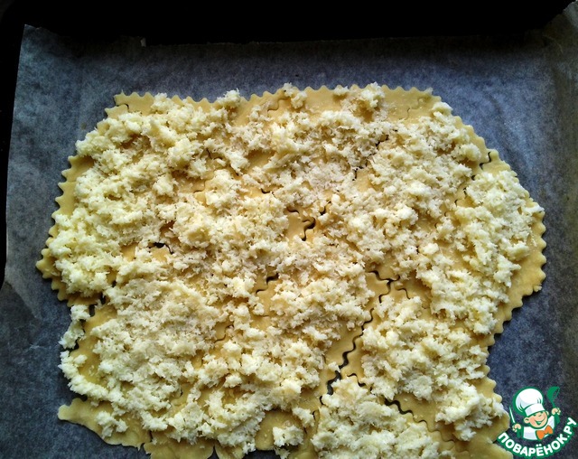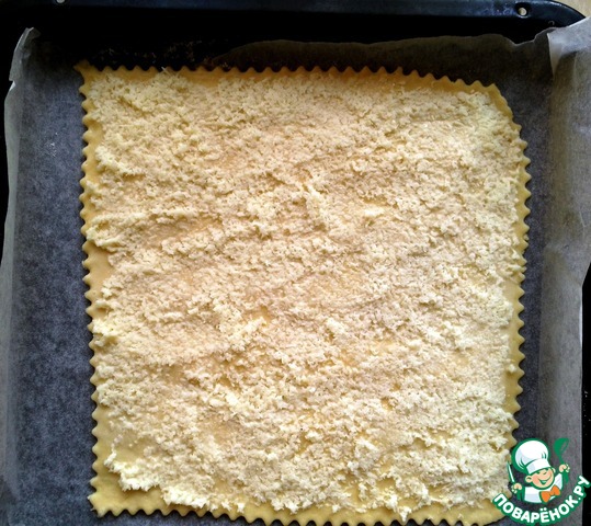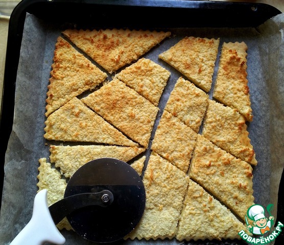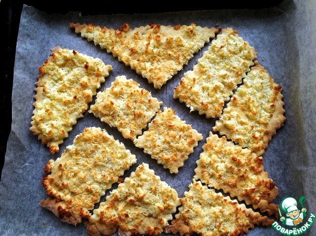 Еще горячим, не снимая с противня, разрезать на произвольно.
