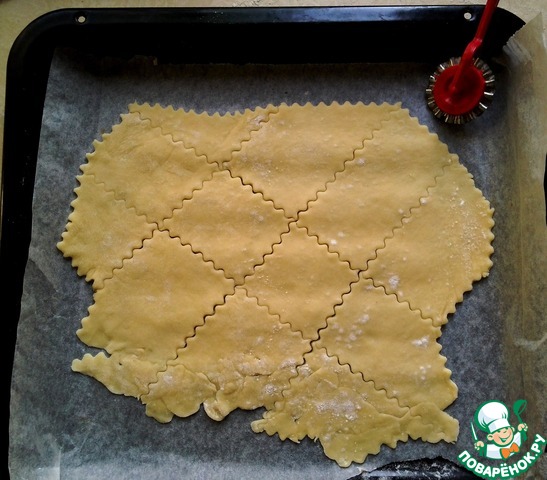 Сырое тесто разрезать.