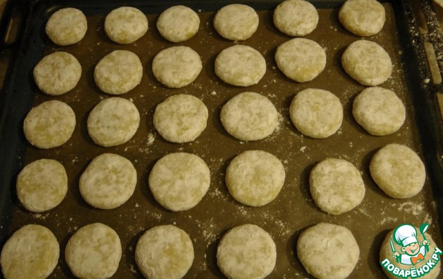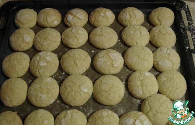 Накрываем противень бумагой для выпечки, формируем шарики диаметром 3-4 см (тесто очень хорошо лепится). Можно шарики немного приплюснуть (по желанию). Каждый шарик обваливаем в пудре и выкладываем на подготовленный противень.