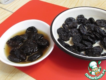 Подготовим чернослив для крема. Для этого 200 гр. чернослива замочим в молоке на ночь для набухания. Остальные 100 гр. замочим в теплой воде за час до приготовления пирожных.