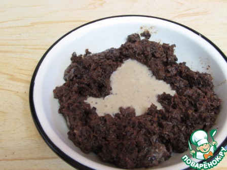Затем добавим к нему оставшееся от замачивания молоко. Его останется не так уж и много, чернослив впитает в себя большую часть.